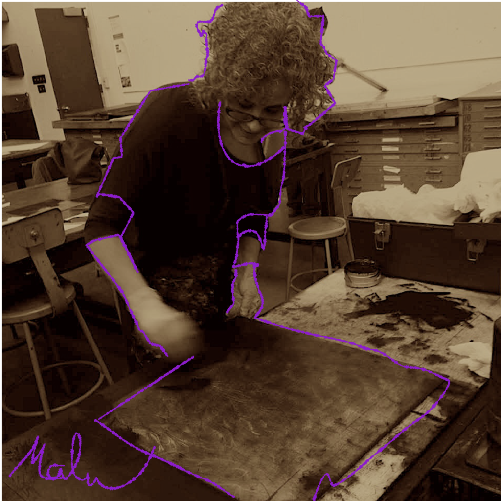 Malu is an international artist, having lived in nine different countries, speaking five languages, with a BFA in Theatre, an MFA in Visual Arts & Art History, an MA in Education – having taught Visual Arts, Theatre and History of Art at high school, pre-college and college levels for many years-, and an extensive list of group exhibitions, art fairs, and solo shows since the age of 17, as well as a curator-producer of art salons and events. Her record includes grants, awards and honours. She is a process oriented art maker in a visual dialogue with all creatives in this profound tradition; she doesn’t disdain or set herself in opposition to this long history of aesthetic and conceptual investigation. Her main focus is painting and printmaking. For decades, she devoted herself alternating both, but often largely pushing the boundaries of printmaking into installations and continues to develop those projects wherever possible. For Malu, the actual play of elements of aesthetics and materials is an endless field of research, depth, and insatiable rewards. Her goal for the immediate future is to achieve a more comprehensive coherence between both media, in aesthetic, thematic content and conceptual undertones including working in modules in both. She is also creating a multimedia 3D interactive installation project, a secular or universal shrine, Pax Domi, in which ceramics, a medium she has also explored in many phases of her research, is an important component, as it brings an immediate humanistic connection, for both herself and potential audience.